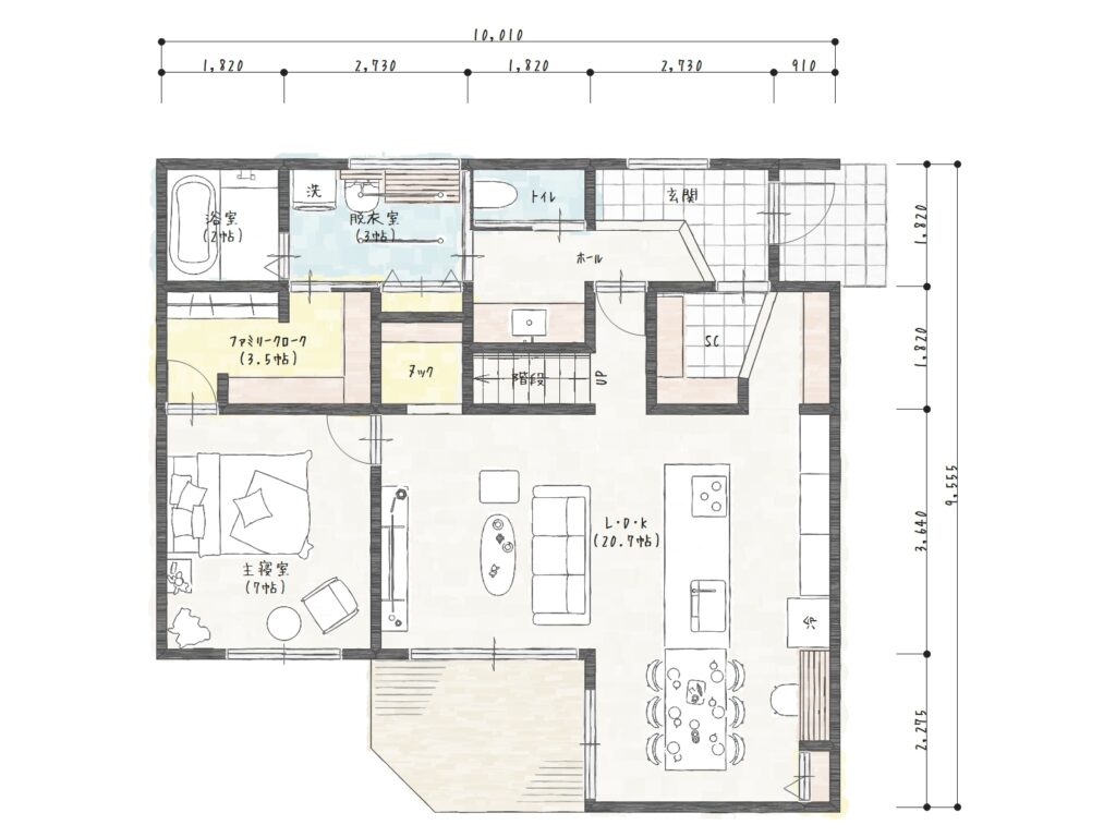 坪数増やさず広さを倍に!設計術満載LDKプラン 間取り紹介 Tweet Share Hatena Pocket RSS feedly Pin it この記事のタイトルとURLをコピーする R R 概要 延べ面積 :114.28㎡(34.57坪) 部屋数 :4LDK 玄関 :東西入り 間口(幅):10.01m 奥行(縦):9.555m 収納率 :9.46% イメージギャラリー Tweet Share Hatena Pocket RSS feedly Pin it 現代社会に疲れたあなたへ これからの時代に必要なミニマム思考プラン 前の記事